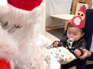 2歳児さんたちはよく知っている曲だったので1歳児さんを誘ってやってくれました。お友達同士でギューしている姿が可愛かったです!