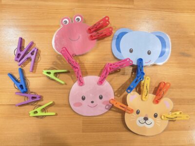 せんたくばさみは、指先の力を使って開く・挟むという一連の動きの中で、親指・人差し指・中指を意識的に使う経験を重ねることができます。指先の巧緻性、集中力と忍耐力、目と手の協調性、問題解決力、達成感と自己肯定感が養われます。